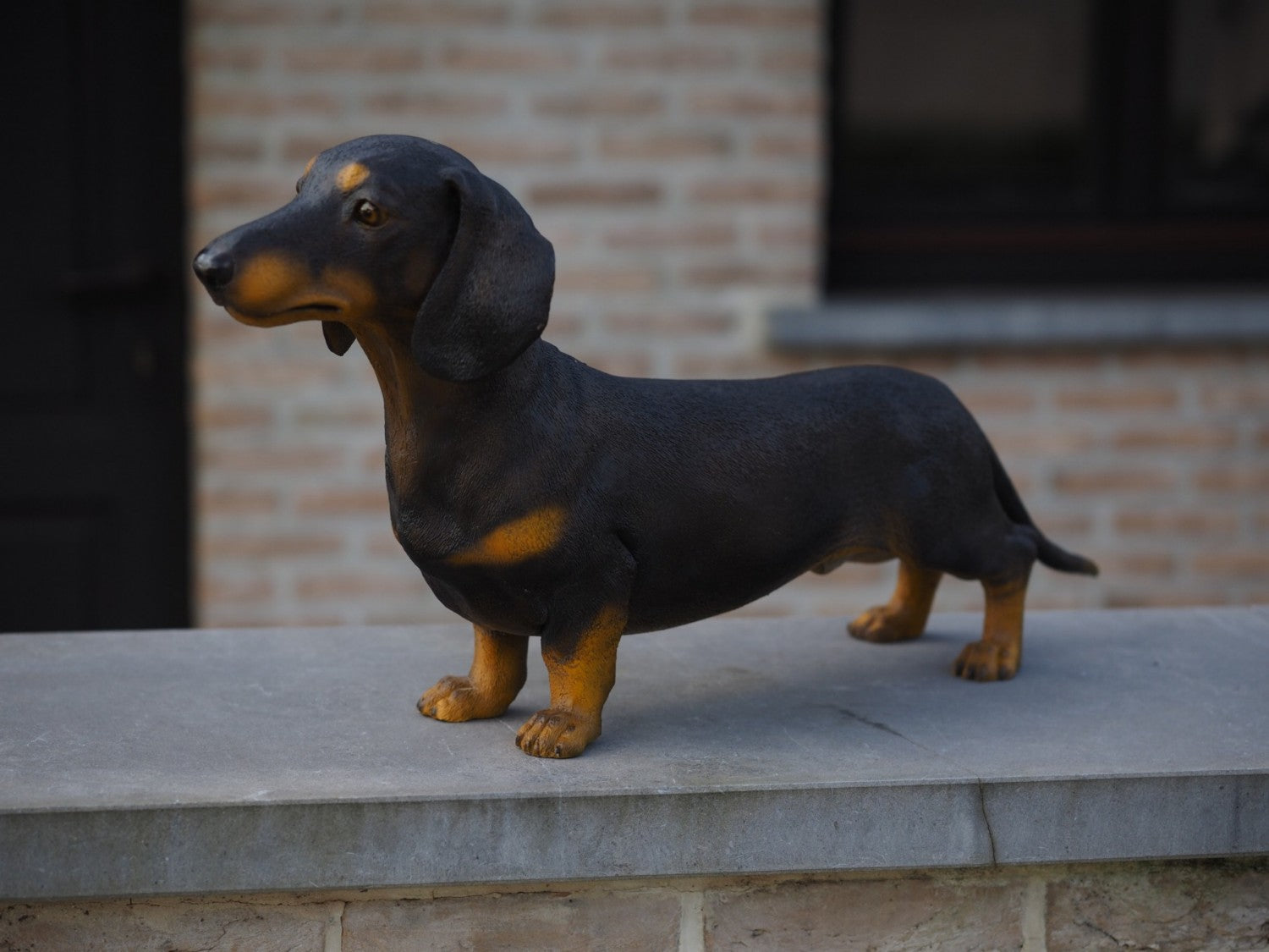 Bronzestatue Dackel, farbig, 33 x 17 x 69 cm