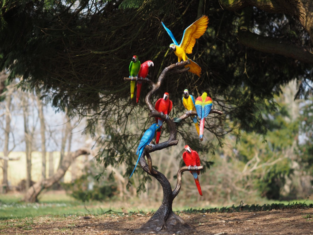 Bronzestatue von 8 Papageien auf einem Baumstamm - FARBE 165x45x75cm