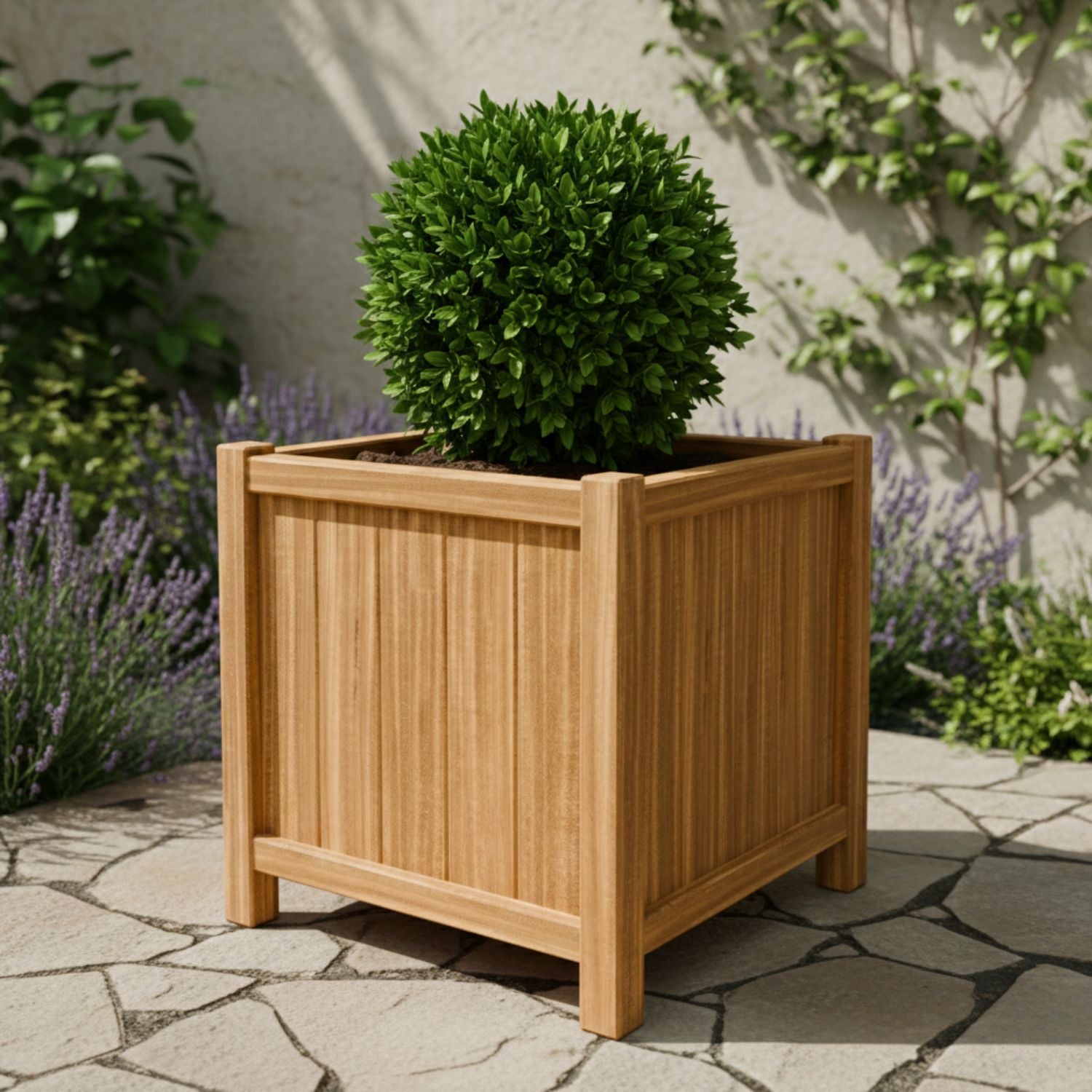 • Nachhaltiges Teakholz: Die Verwendung von Teakholz aus Indonesien sorgt dafür, dass der Pflanzkübel robust und witterungsbeständig ist. Teakholz ist von Natur aus fäulnis- und wasserbeständig, sodass Sie jahrelang Freude an Ihrem Pflanzgefäß haben, ohne dass das Holz schnell beschädigt wird.