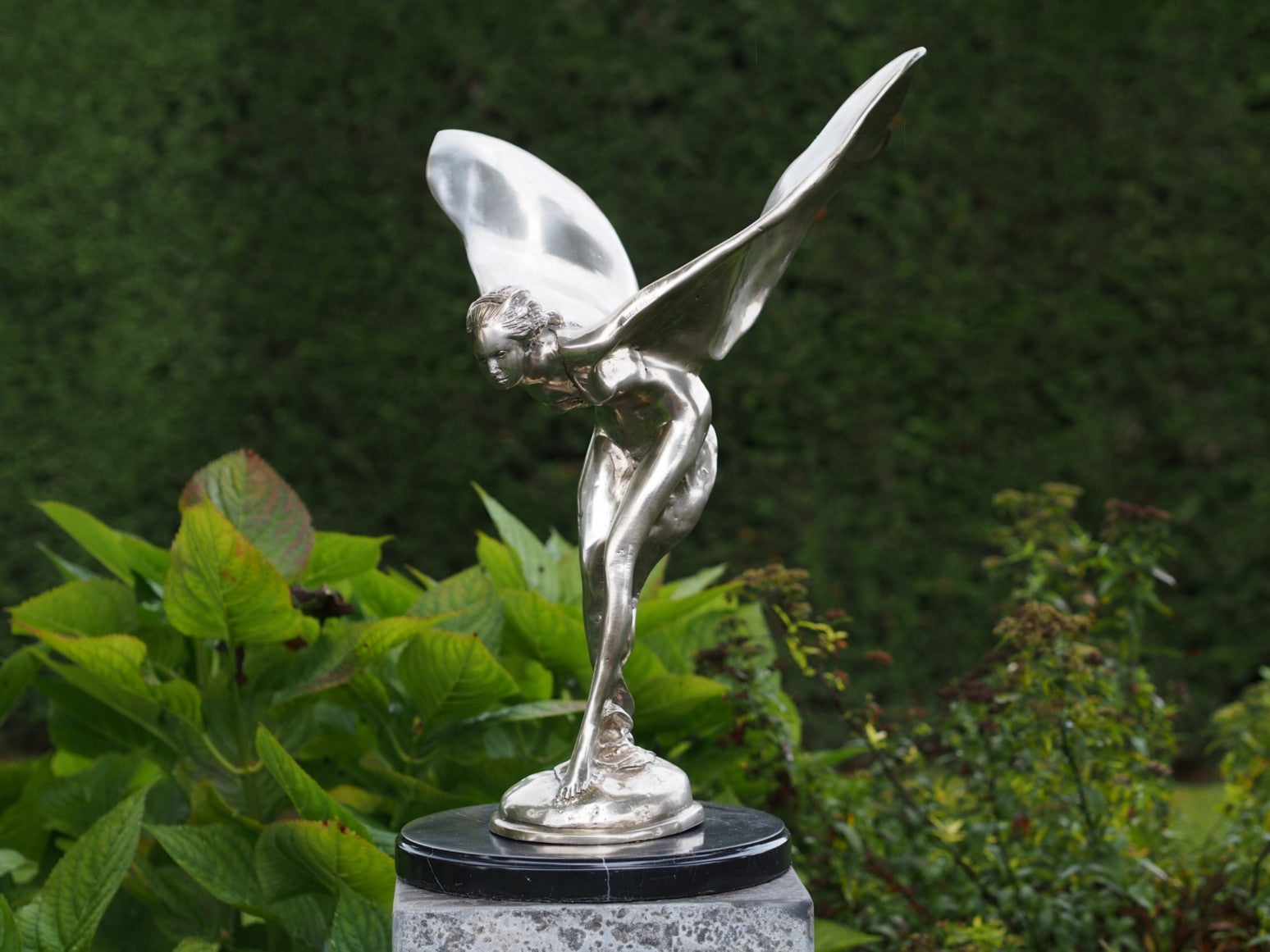 Despite the robustness of bronze, maintenance is easy. To maintain its beautiful patina, we recommend lightly rubbing the statue twice a year with colorless wax. It's also important to quickly remove bird droppings with lukewarm water and a soft sponge. This will keep your statue in top condition, year after year.