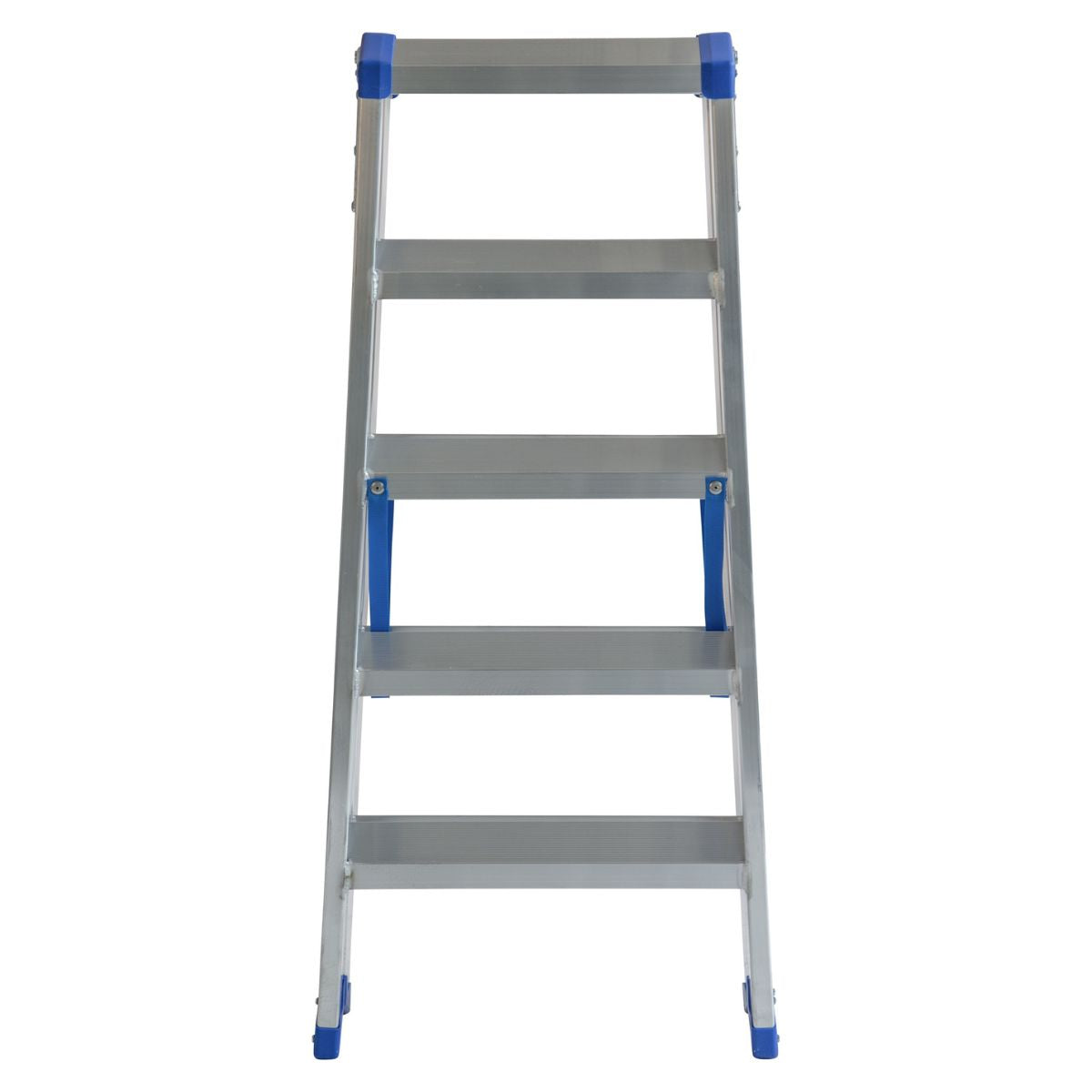 Het gesloten kokerprofiel aan zowel de voor- als achterkant zorgt voor extra stevigheid en duurzaamheid. Dankzij de dubbele uitvoering met evenveel treden vooraan als achteraan is de ladder flexibel inzetbaar.