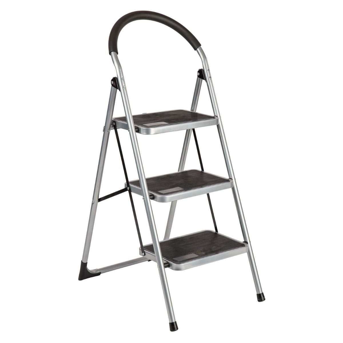 De treden van 38 x 26 cm zijn voorzien van een antislipcoating, zodat je altijd stevig staat. Bovendien zijn alle drie de treden uitgerust met een automatische vergrendeling voor extra veiligheid.