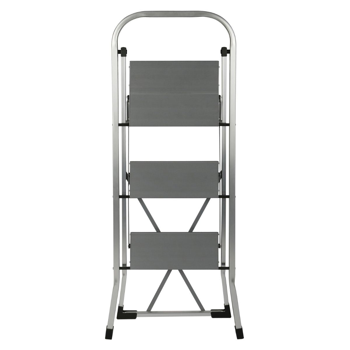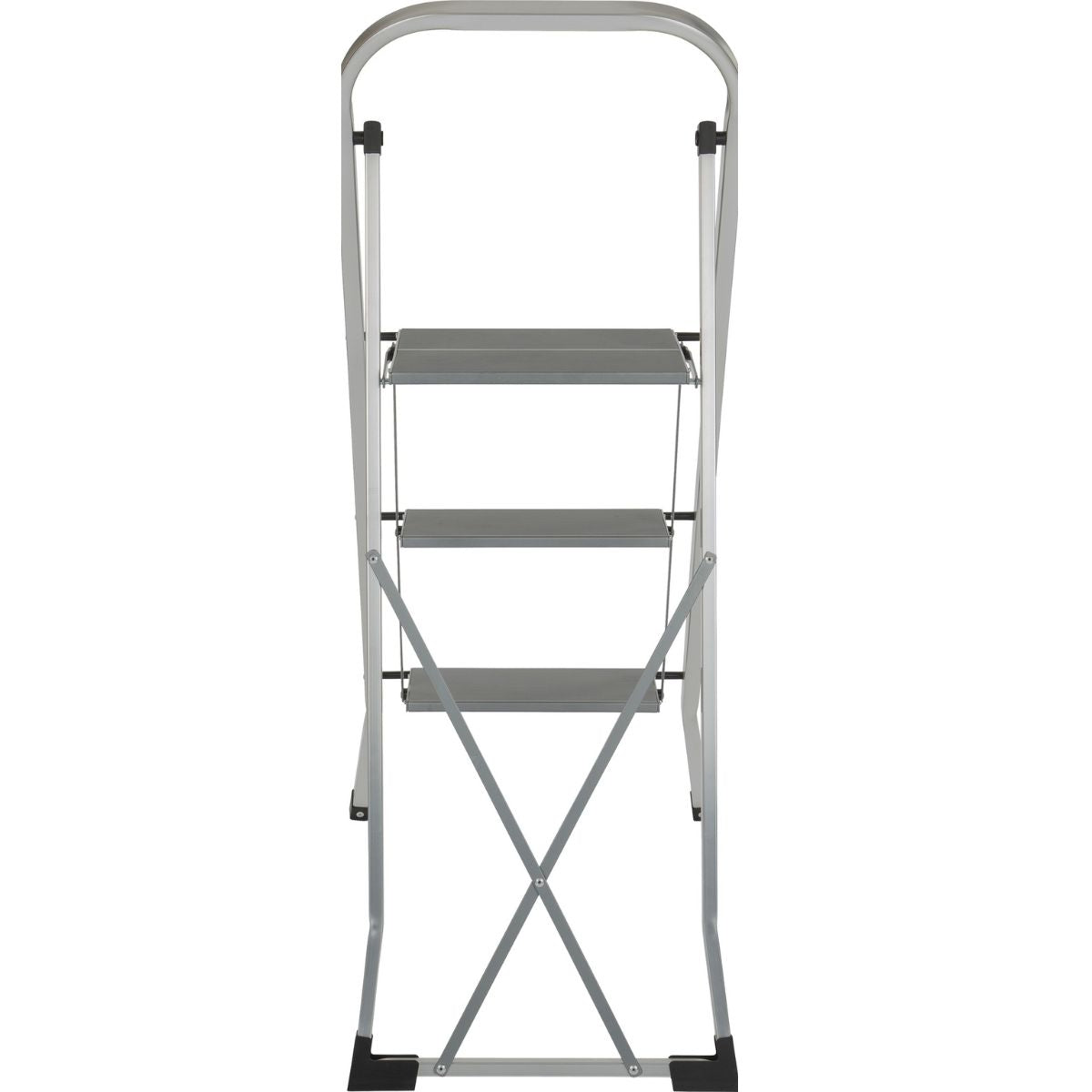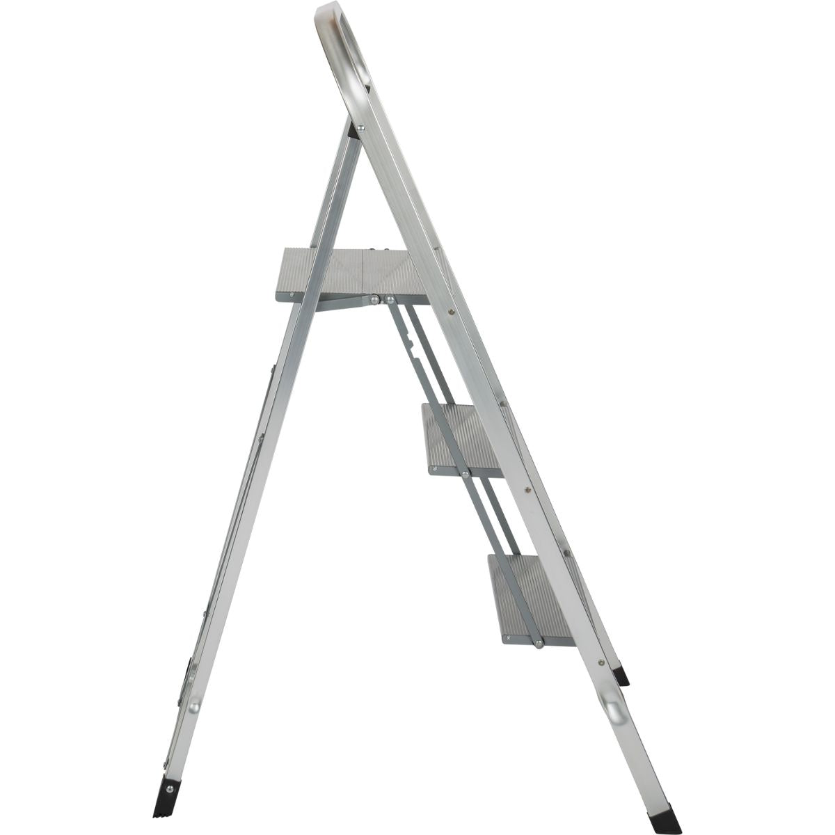 Ingeklapt is de trap slechts 4,8 cm diep. Dit maakt hem ideaal om achter een deur, in een kast of in een kleine berging op te bergen, zonder dat hij in de weg staat.
