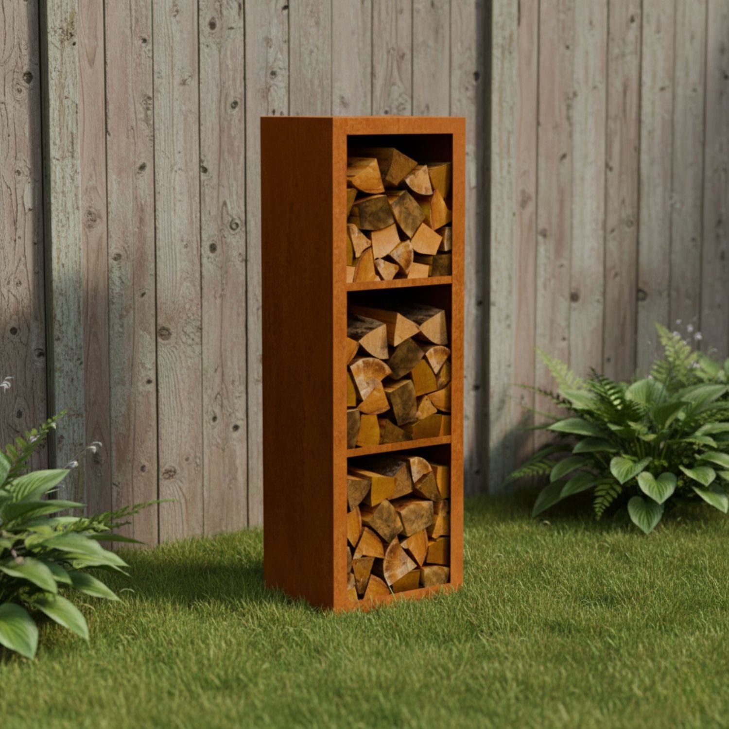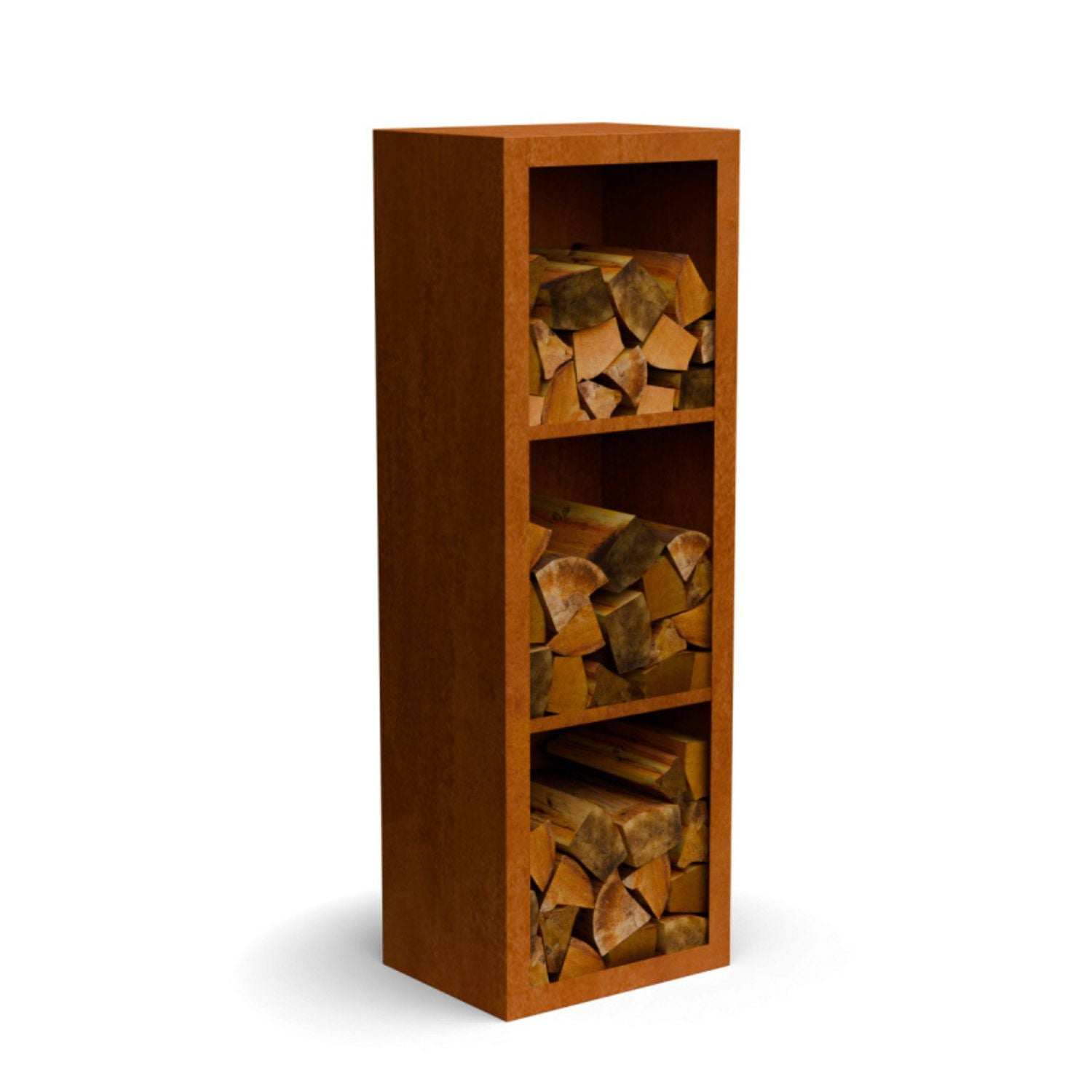 Cortenstalen houtopslag met 3 Vakken met achterwand 50x38,5x150 cm