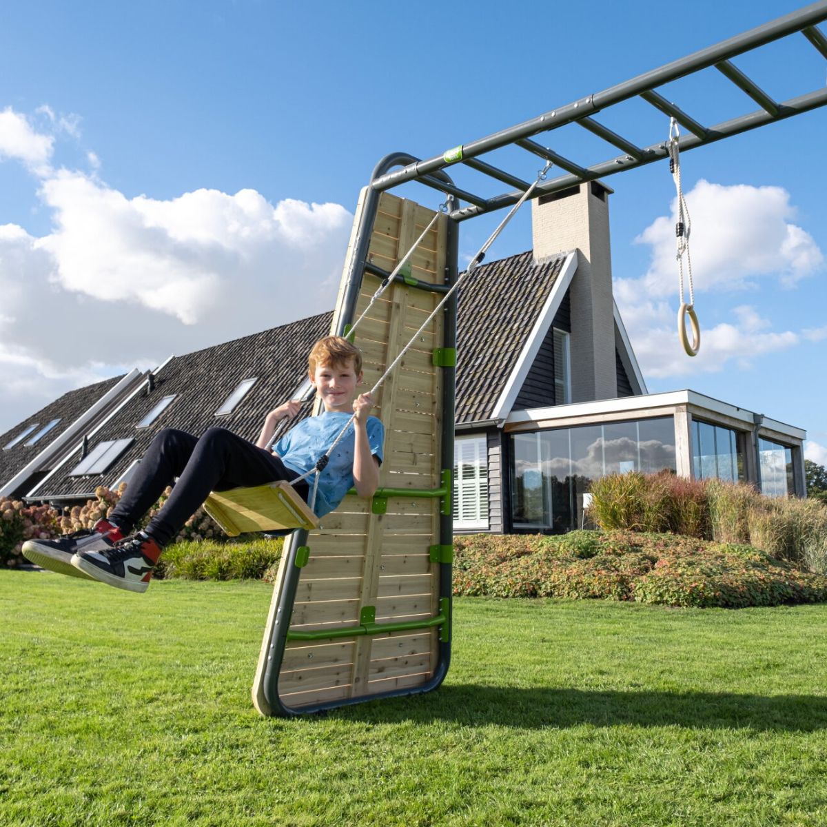 Ofrezca a su hijo la mejor experiencia de juego al aire libre con el columpio de madera EXIT GetSet. Este columpio natural y elegante está especialmente diseñado para acoplarse a las barras de mono GetSet MB200 y MB300. Ya sea para momentos de tranquilidad o para un juego exuberante, columpiarse sigue siendo una actividad favorita de todos los tiempos que permite a su hijo combinar relajación y ejercicio, en su propio jardín.