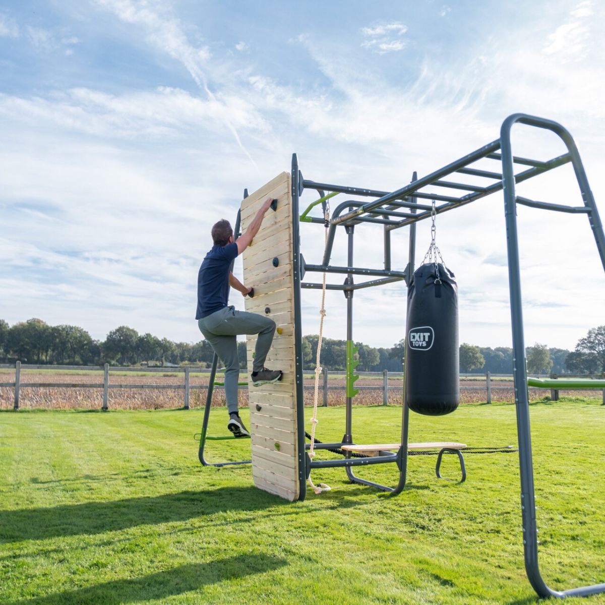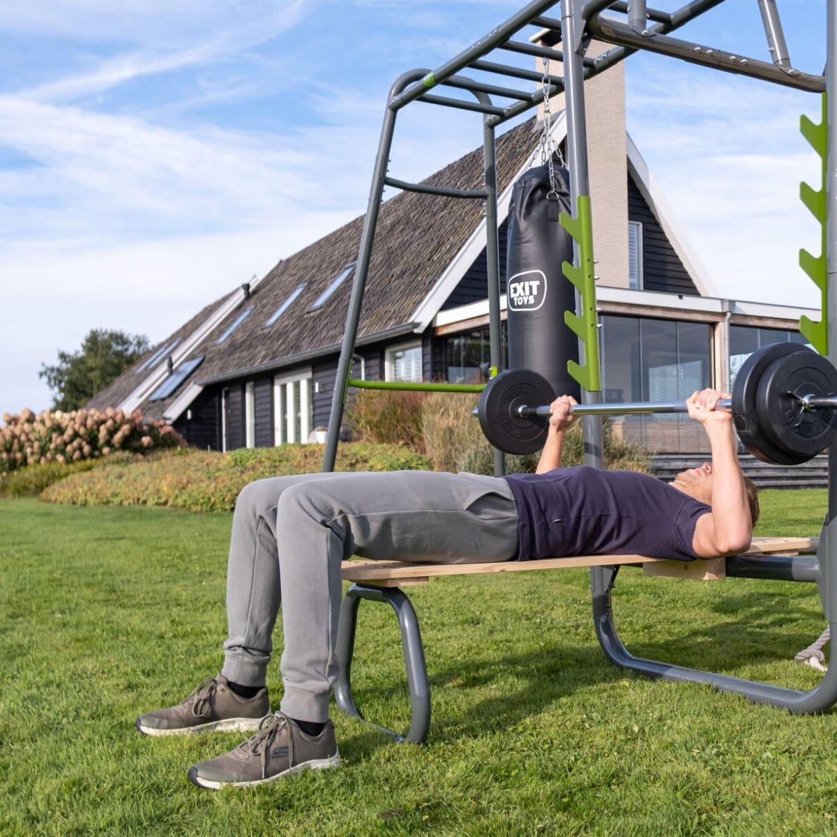 ¿Quieres ejercitarte a cualquier hora del día sin salir de casa? Con la EXIT GetSet PS520, llevas una solución completa de fitness al aire libre a tu jardín. Esta estación de energía multifuncional, de más de cuatro metros de largo, está diseñada para deportistas mayores de 14 años y adultos, e incluye nada menos que diez accesorios de alta calidad. Ya sea que trabajes fuerza, resistencia o coordinación, la PS520 es compatible con todo tipo de entrenamiento, en todos los niveles.