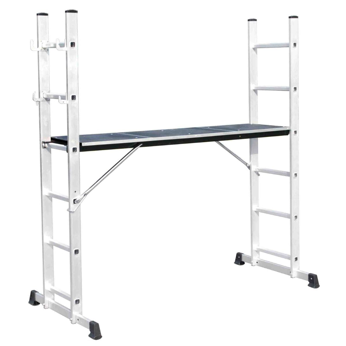 Avec l'échelle Multi+, vous optez pour la flexibilité et la sécurité. Grâce à sa conception astucieuse, elle s'adapte à de nombreuses applications, du travail en hauteur au travail en toute sécurité sur une plateforme.