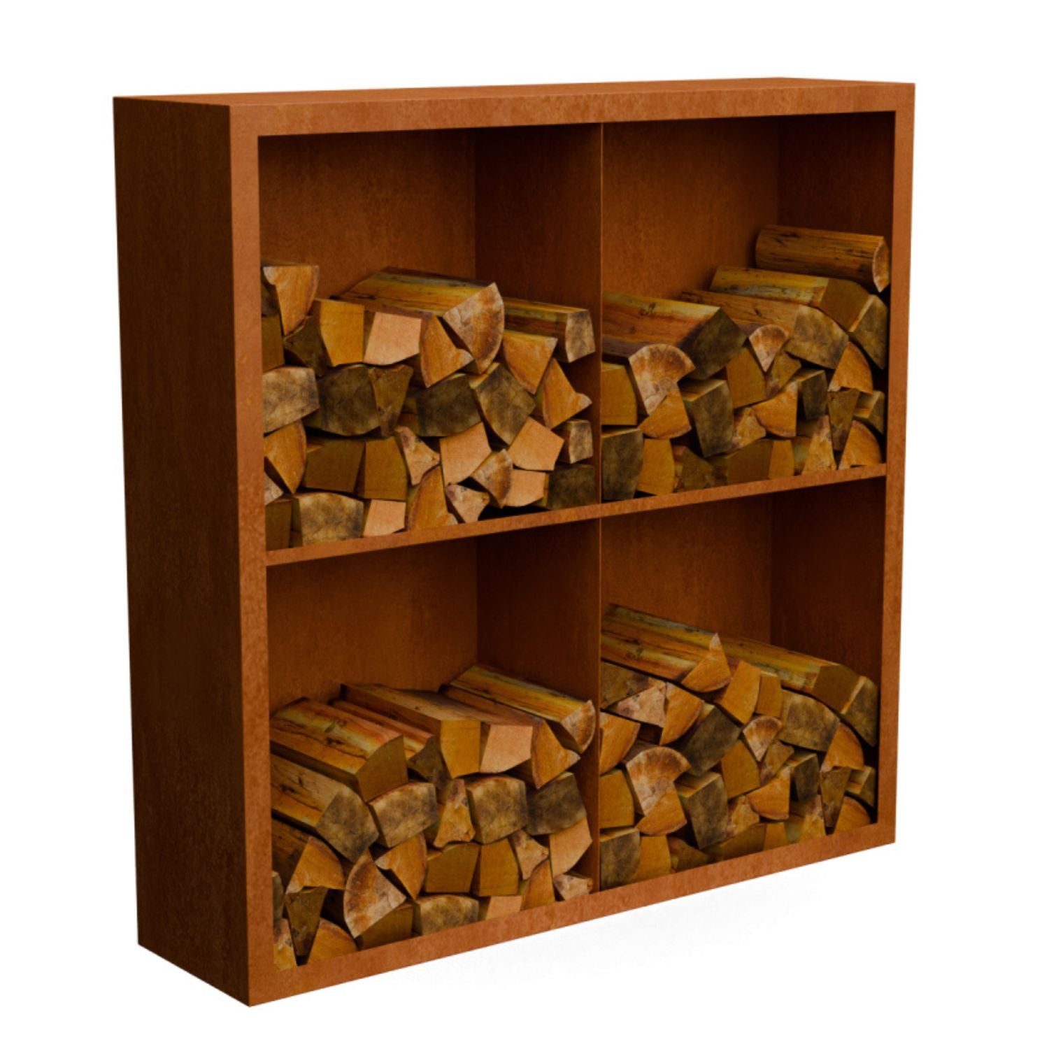 Cortenstalen houtopslag met 4 Vakken met achterwand 150x38,5x150 cm