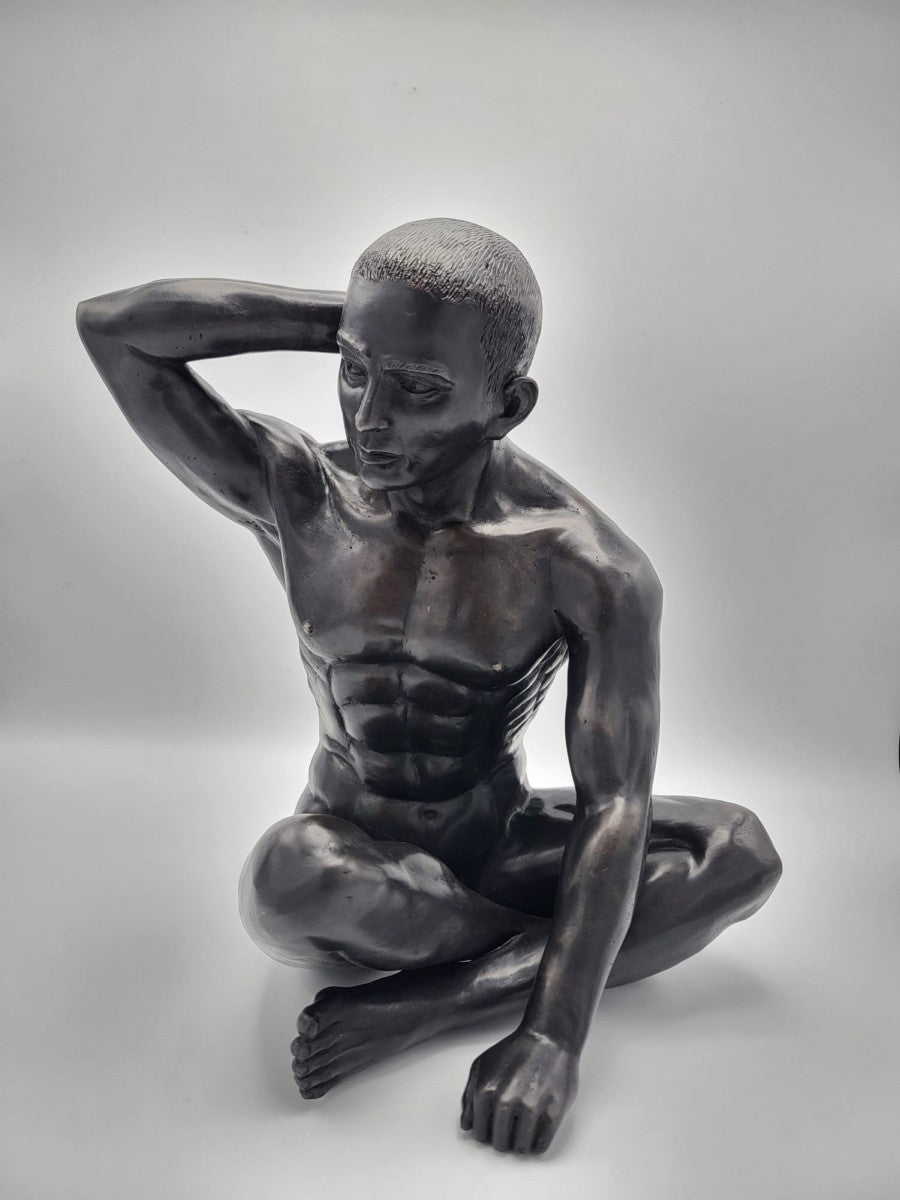 Avec la statue en bronze de l'Homme assis aux bras levés, vous choisissez non seulement une magnifique pièce pour votre collection, mais aussi un témoignage de l'éternité qui continuera de rayonner pour des générations.