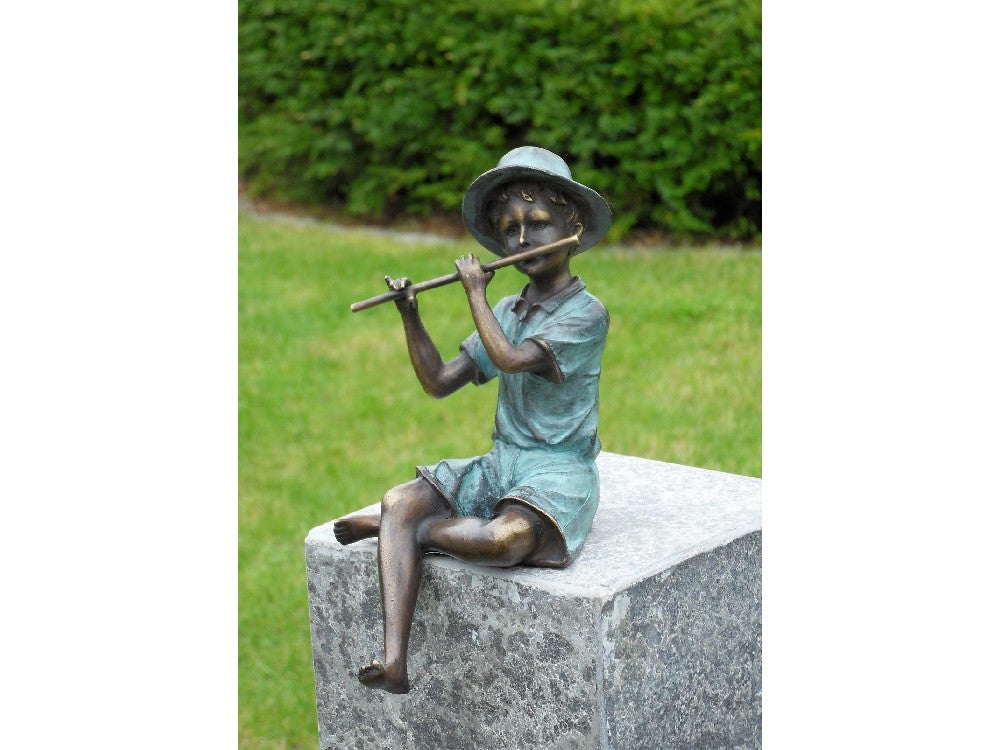 Bronzen beeld Jongen met fluit 20x10x12cm