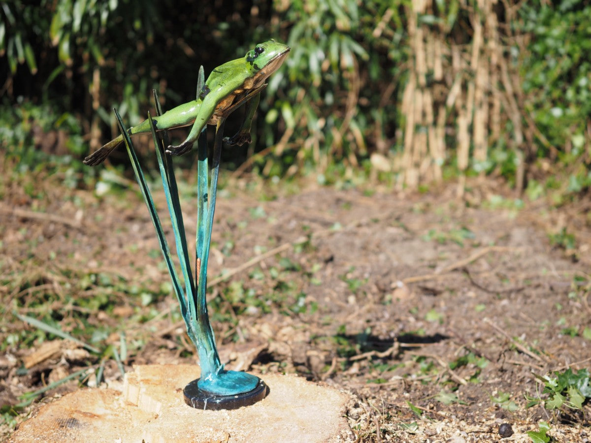 Bronzen beeld Springende kikker (naar boven) 82x26x53cm