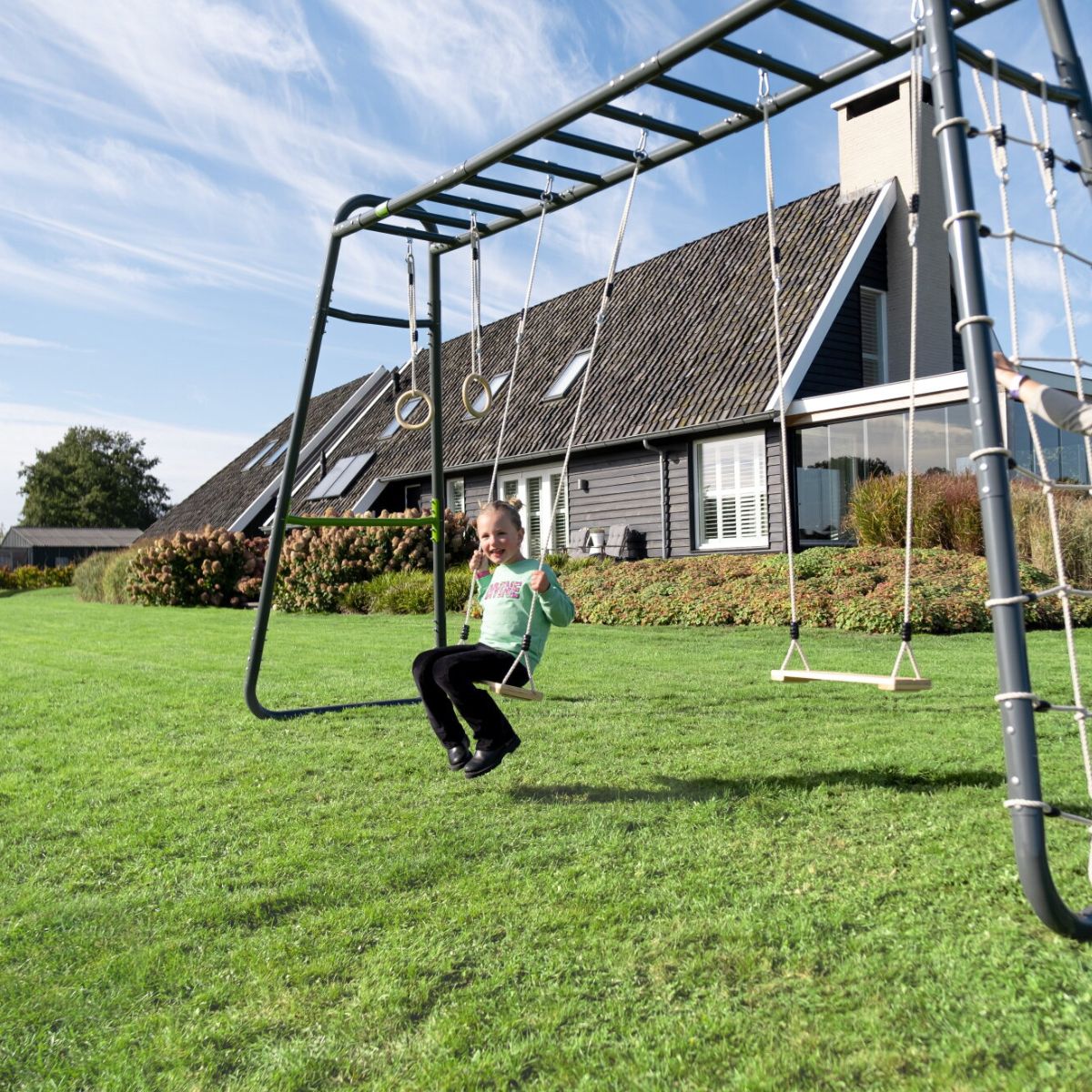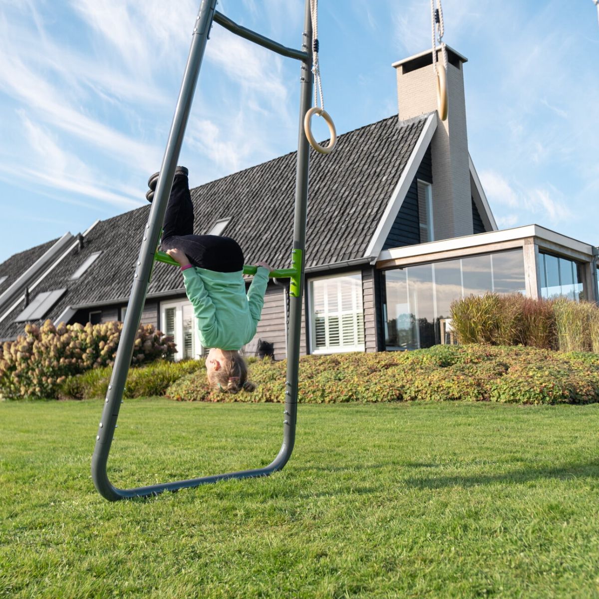 Deze multifunctionele monkeybar is niet alleen leuk voor kinderen, maar ook geschikt voor ouders of tieners die willen sporten in de buitenlucht. Binnen enkele minuten transformeer je het toestel tot een outdoor fitnessrek – ideaal voor een full-body workout zonder dat je daarvoor je tuin hoeft te verlaten.
