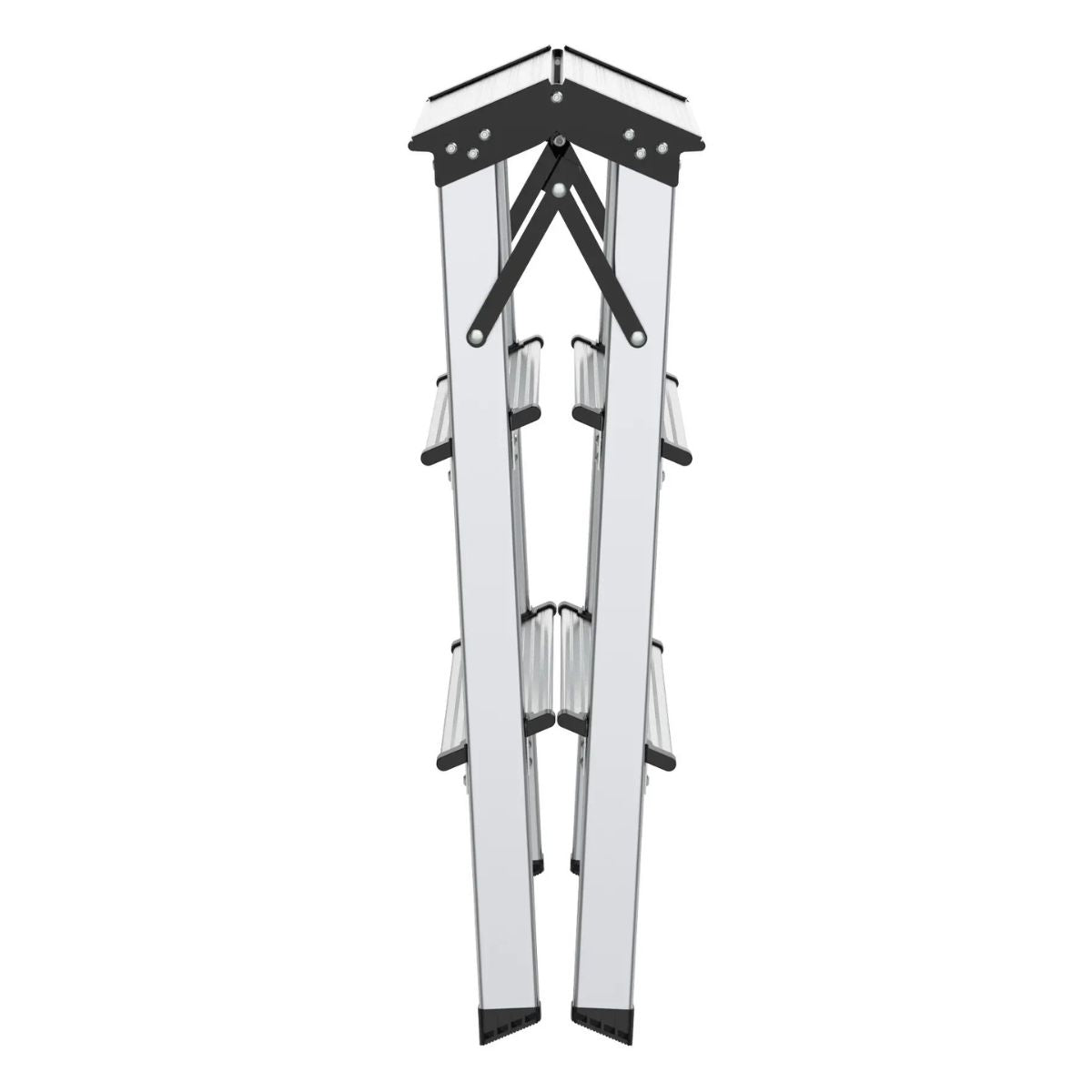 Ingeklapt is de trap slechts 74 cm hoog. Hierdoor kun je hem gemakkelijk in een kast of hoek plaatsen, zonder dat hij veel ruimte inneemt.